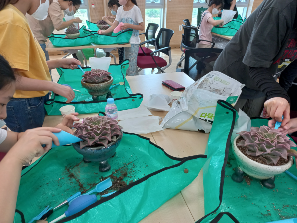 사전 신청을 통해 8가정이 참여했고 지난 7월 29일부터 8월 19일까지 매주 토요일 4회에 걸쳐 여러 재료를 통한 도자기 만들기, 내가 만든 화분에 반려 식물을 심기 등의 다양한 체험 활동을 진행했다.