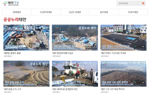 영상 검색은 태안TV 유튜브 채널 또는 태안TV 홈페이지에서 가능하다.