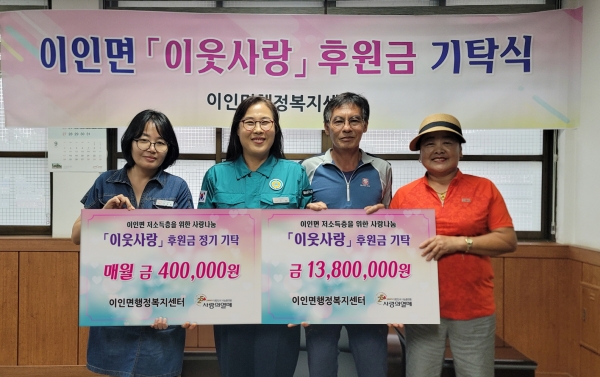 이인면은 기부자의 뜻에 따라 관내 기초생활수급자와 차상위계층 등 취약계층 138가구에 가구당 10만원을 이달 안으로 지급할 계획이다.