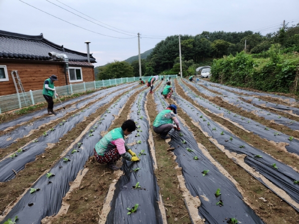 이날 새마을회원 10여명은 약 1000㎡의 용지를 정리하고 1200포기의 배추 모종을 심었다.
