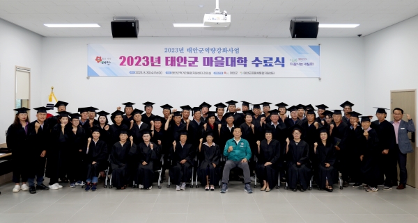 군은 지난 8월 30일 태안읍에 위치한 태안군먹거리통합지원센터에서 가세로 군수와 교육 수료생 등 60여명이 참석한 가운데 ‘2023년 태안군 마을대학 수료식’을 가졌다고 밝혔다.