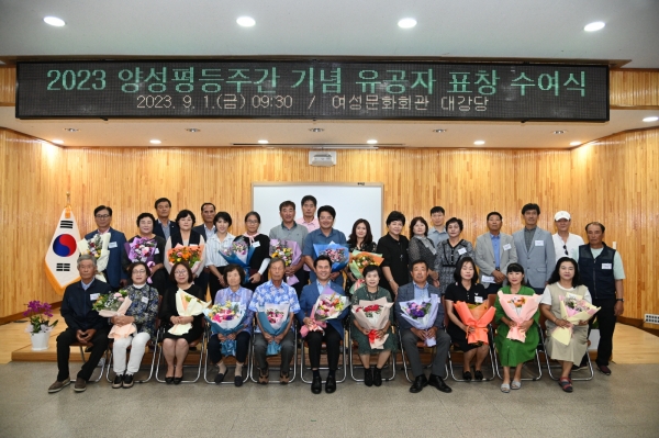 [충청뉴스큐] 부여군이 지난 1일 양성평등주간을 맞아 여성문화회관 대강당에서 여성의 권익증진과 양성평등문화확산 및 사회참여 확대에 기여한 유공자 3명과 평등가정 16가정에 대한 표창을 수여했다.