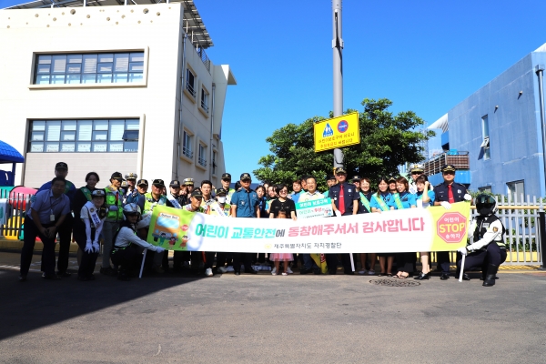 [충청뉴스큐] 제주특별자치도 자치경찰단은 6일 외도초등학교에서 어린이보호구역 내 교통사고 예방을 위한 교통안전 합동 캠페인을 전개했다.