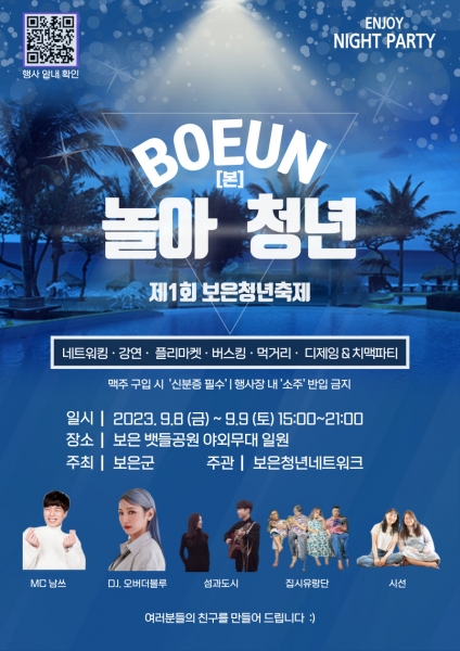 [충청뉴스큐] 보은군은 오는 8일과 9일 양일간 보은읍 뱃들공원 일원에서 보은군 청년들을 위한 첫 축제인 ‘놀아 BEOUN 청년’축제가 개최한다고 밝혔다.
