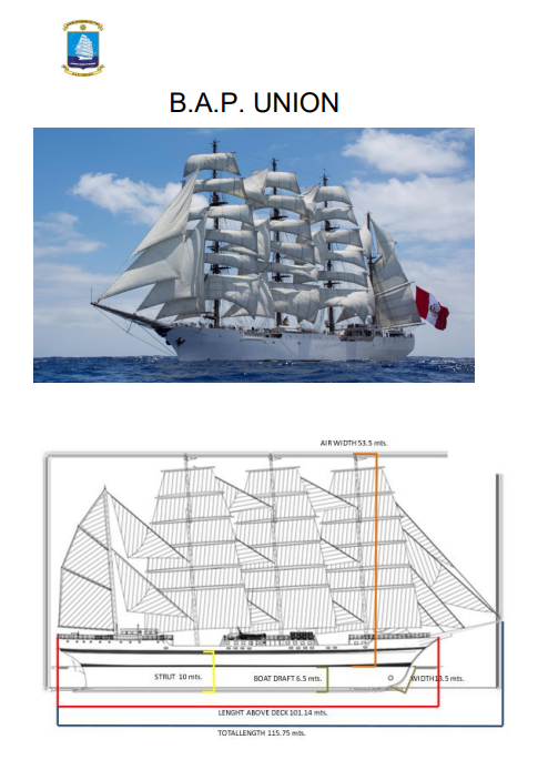 ‘비에이피유니언호’는 페루 해군의 상징적 선박으로 해군 장교가 될 해사 생도의 훈련을 주목적으로 항해하며 페루의 이동대사관의 역할도 겸임하고 있다.