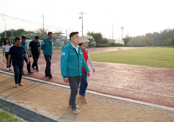 당시 군은 군민들의 건강관리를 도모하고 안전한 산책을 돕고자 일반 우레탄 트랙 옆에 지압용 황토볼, 황토, 마사토 구간으로 구성된 걷기 트랙을 별도 설치했다.