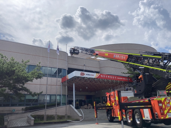 [충청뉴스큐] 계룡시는 지난 7일 왕대공단에 위치한 대전우편집중국에서 지진으로 인한 복합재난을 가정해 ‘2023 재난대응안전한국훈련’을 실시했다고 밝혔다.