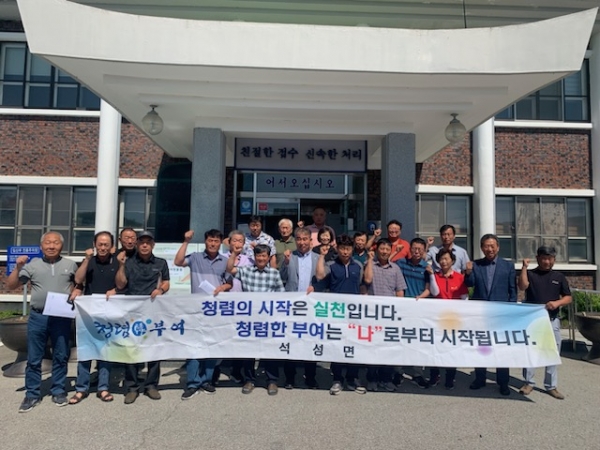 [충청뉴스큐] 석성면이장단협의회는 지난 8일 석성면 행정복지센터 앞에서 청렴하고 깨끗한 사회 조성을 위한 ‘청렴 결의대회’를 가졌다.