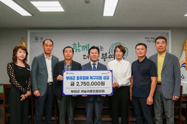 [충청뉴스큐] 부여군귀농귀촌인협의회는 집중호우 피해를 입은 지역주민을 위한 성금 275만원을 지난 15일 부여군에 기탁했다.
