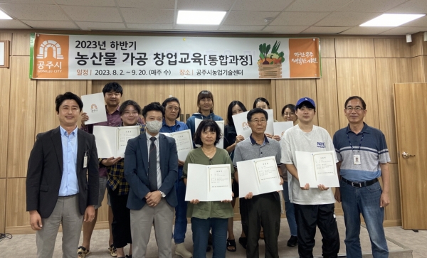 [충청뉴스큐] 공주시가 지난 20일 농업기술센터 농업회관에서 ‘2023년 농산물 가공 창업 교육’ 수료식을 진행했다.