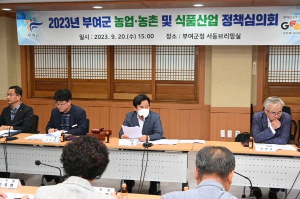 [충청뉴스큐] 부여군은 지난 20일 부여군청 서동브리핑실에서 부여군 농업·농촌 및 식품산업 정책심의회를 개최했다.