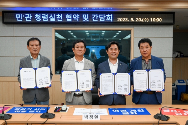 [충청뉴스큐] 부여군은 지난 20일 청렴취약분야인 공사 및 인·허가 관련 민·관 단체들과 청렴 실천 협력을 위한 협약식을 개최했다.