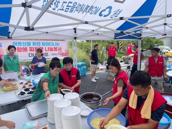 중학동새마을회에서는 닭강정과 생수를 후원하고 배식과 설거지 등 나눔 활동에 동참했다.