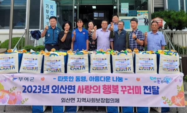 [충청뉴스큐] 부여 외산면 지역사회보장협의체는 지난 25일 관내 저소득 취약계층 30가구를 대상으로 ‘행복 꾸러미 전달 사업’을 실시했다.