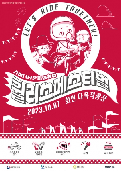 라이딩에 관심있는 사람이라면 남녀노소 누구나 참여가 가능한 이번 페스터벌은 7일 오전 10시 ‘케이벨로’와 함께하는 어린이 자전거 대회인 ‘스트라이더 컵’을 시작으로 저 배기량 바이크를 대상으로 하는‘거북이 경주’모터사이틀 정비점검 체험, 라이딩 소품 중고마켓 등 라이더와 관련된 다양한 프로그램이 계획돼 있어 전국의 많은 라이더들의 기대를 모으고 있다.