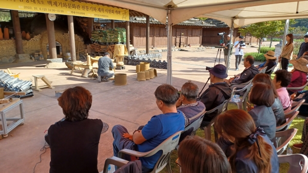 [충청뉴스큐] 부여군은 지난 6일 백제기와문화관에서 국가무형문화재 제91호 제와장 김창대 선생의 전통기와 제작 시연회를 개최했다.