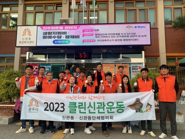 클린신관운동은 시민단체의 자발적인 릴레이식 청소 실천을 통해 쓰레기 없는 깨끗한 거리 조성을 위해 시작된 운동으로 올해 초 신관동 관내 15개 단체와 클린신관운동 협약을 맺고 지난 9월까지 총 13회의 환경 정화 활동을 펼쳐왔다.