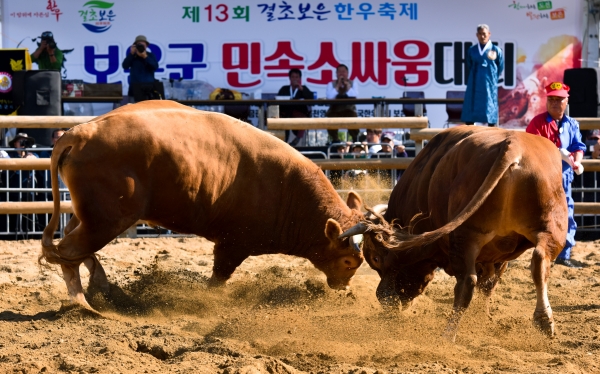 올해로 열네번째를 맞이한 보은전국민속소힘겨루기대회는 보은 한우와 농특산품의 우수성을 전국에 알리고 보은대추축제 관광객 유치에도 크게 기여하고 있다.