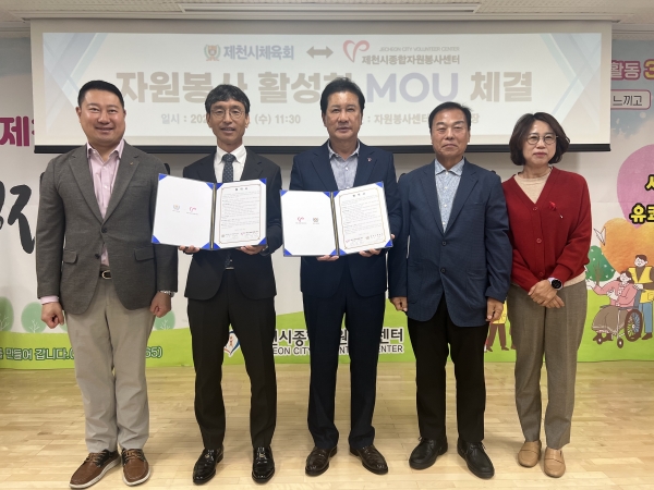 [충청뉴스큐] 제천시체육회와 제천시종합자원봉사센터가 지난 18일 제천시종합자원봉사센터 교육장에서 제천시 체육 진흥과 자원봉사 활성화를 위한 업무협약을 체결했다.