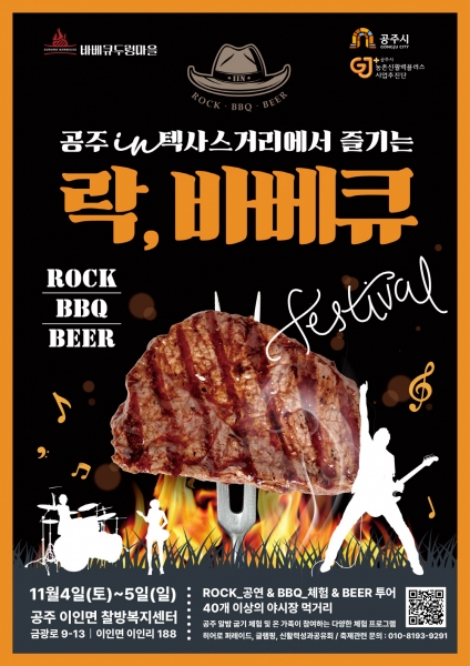 [충청뉴스큐] 공주시는 오는 11월 4일과 5일 양일간 이인면 찰방센터에서 ‘제1회 락,바베큐 페스티벌’을 개최한다고 25일 밝혔다.