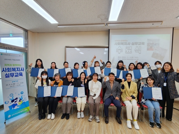 [충청뉴스큐] 공주시는 지난 3일 공주대학교 옥룡캠퍼스 평생교육원에서 직업교육훈련 ‘지역과 함께하는 사회복지사 실무교육’ 수료식을 진행했다.