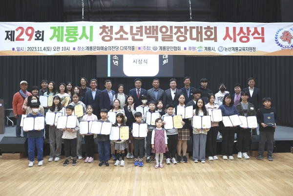 산문부 전윤아 학생과 운문부 김주아 학생이 장원의 영예를 안은 가운데 이응우 시장은 “계룡시 청소년들이 다양한 경험을 통해 본인의 재능을 발견하고 발휘할 수 있도록 지원을 아끼지 않겠다”고 말했다.