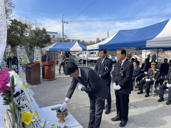 김윤철 회장은 추념사에서 “호국영령들의 고귀한 희생정신을 본받고 그 숭고한 정신을 잊지 말아야 한다 조국의 자유와 평화를 수호하기 위해 목숨을 바치신 호국영령들께 삼가 명복을 빈다”고 말했다.
