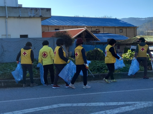 이날 급격히 추워진 아침 날씨에도 남면 적십자회원 15여명이 참석해 길가, 하천변 쓰레기들을 수거하며 환경 정화 활동을 펼쳤다.