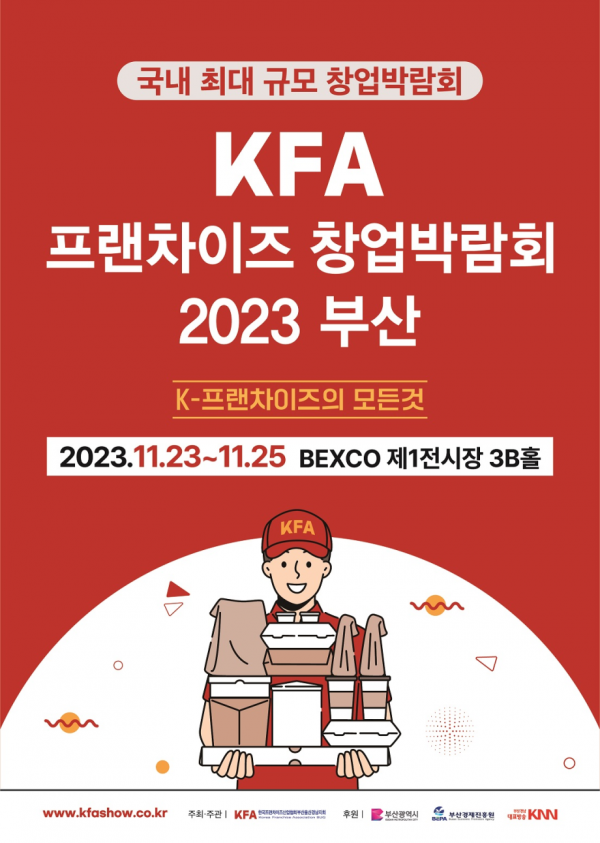 [충청뉴스큐] 케이-프랜차이즈의 모든 것을 한눈에 볼 수 있는 박람회가 개최된다 부산시는 오는 23일부터 25일까지 3일간 벡스코 제1전시장에서‘KFA 프랜차이즈 창업박람회 2023 부산’이 개최된다고 밝혔다.
