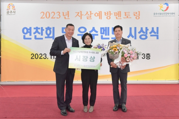 이날 연찬회에서는 공주소방서 의용소방대연합회, 대한적십자사봉사회 공주시지구협의회, 공주노인복지센터, 청소년인성교육문화원, 신관주공 6단지 관리사무소 등 자살예방 멘토 활동자 가운데 우수멘토 활동자 7인을 선정해 표창장을 수여했다.