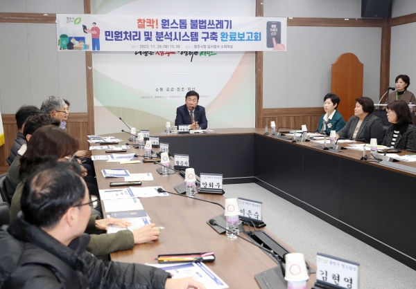 청주시는 28일 임시청사 소회의실에서 ‘원스톱 불법쓰레기 민원처리 및 분석시스템 구축 완료보고회’를 개최했다.