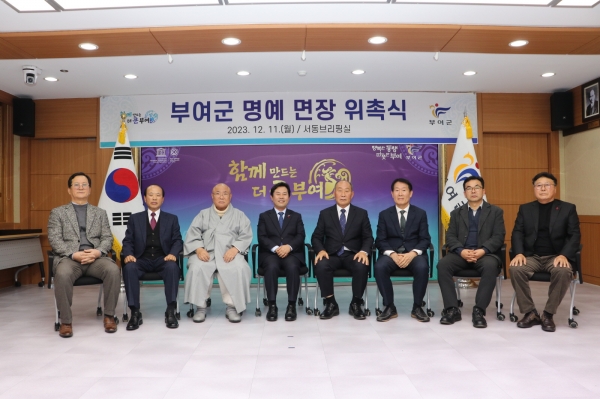 [충청뉴스큐] 부여군은 지난 11일 명예 면장 위촉식을 개최하고 지역출신 인사 10명을 명예 면장으로 위촉했다.