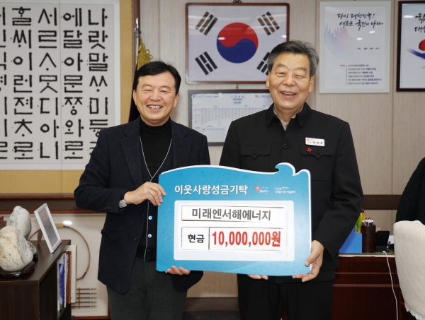 [충청뉴스큐] ㈜미래엔서해에너지가 21일 오전 군청 군수실에서 가세로 군수와 박영수 대표이사, 송민섭 전무 등이 참석한 가운데 기탁식을 갖고 성금 1천만원을 군에 기탁했다.