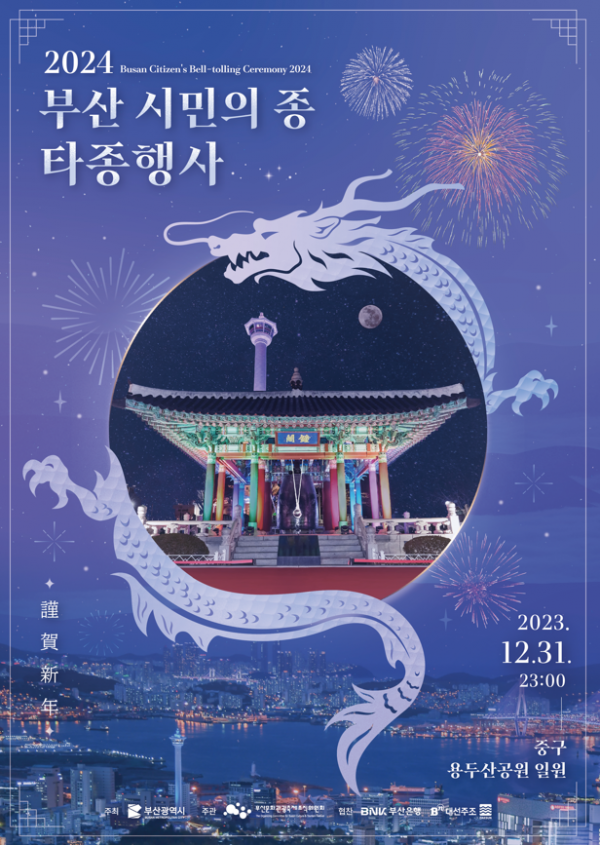 부산시는 계묘년 한 해를 되돌아보고 다가오는 갑진년의 희망찬 출발을 알리는 ‘2024 새해맞이 부산 시민의 종 타종행사’를 용두산공원에서 개최한다고 밝혔다.
