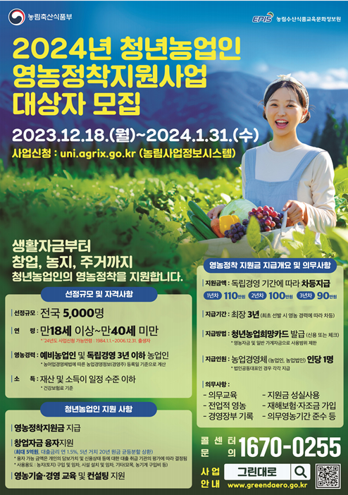 [충청뉴스큐] 부여군은 젊고 유능한 인재들의 농업 진출을 위한‘24년 청년후계농 영농정착 지원사업’을 이달 31일까지 온라인을 통해 접수한다.
