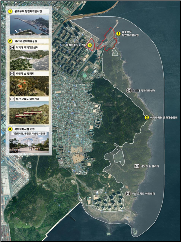 지난 2019년 2월 러시아 화물선의 광안대교 충돌사고 이후 폐쇄돼 용호별빛공원으로 임시 개방 중인 ‘용호부두’와 해상케이블카 사업 중단으로 방치된 민간공원에 대한 활용방안 수립의 필요성이 지속적으로 제기돼 왔다.
