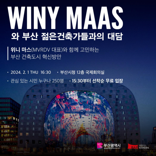 [충청뉴스큐] 부산시는 오늘 오전 9시 시청 국제의전실에서 세계적인 건축가이자 네덜란드 MVRDV 건축그룹 대표인 위니마스를 시 명예자문건축가로 위촉한다고 밝혔다.