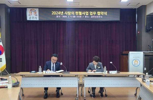 [충청뉴스큐] 공주시는 지난 5일 보건소 대회의실에서 혈액 수급 문제 해결과 헌혈문화 확산을 위해 대한적십자 대전세종충남혈액원과 헌혈사업 업무협약을 체결했다.