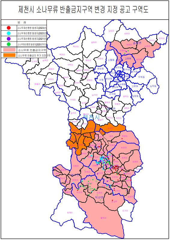 제천시는 2016년 수산면 원대리에서 소나무재선충병 최초 발생 이후 고사목 제거와 예방나무주사를 매년 지속 실시해 소나무재선충병 방제에 힘써 왔었다.