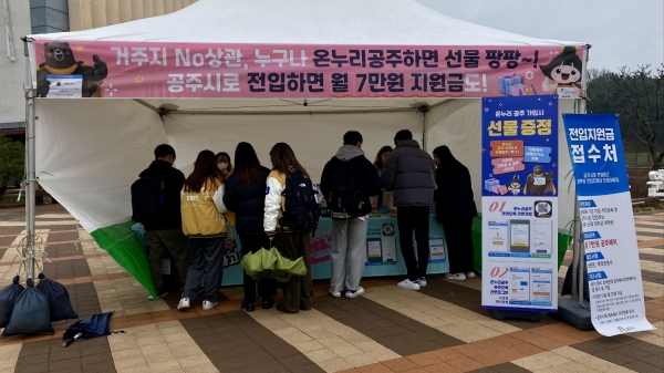 특히 지난 5일부터 7일까지 3일간 국립공주대 신관캠퍼스에서 홍보부스를 마련하고 공주시 전입지원금을 비롯한 청년 지원정책과 공주시 청년센터, 청년 공유공간 ‘일루와유’ 등을 안내했다.
