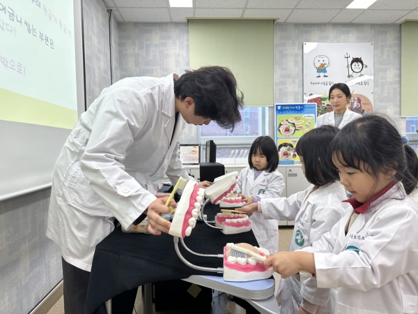 이번 프로그램은 영유아 눈높이에 맞는 △구강 보건교육, 치아 모형 지우개를 이용한 △치아 홈 메우기 실습 △칫솔질·치실 사용법 교육, 의사 가운 입고 △치과의사·치과위생사 직업 체험 등 구강건강에 대한 흥미를 돋울 수 있는 다양한 구강 예방 프로그램으로 알차게 구성했다.