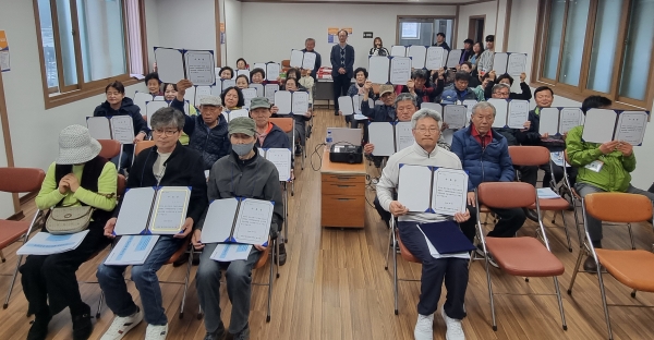 지난 3일 죽전 2리 마을회관에서 열린 수료식에는 교육에 참여한 주민 50명에게 수료증을 전달했으며 이 자리에서 지역 청년창업공동체, 사회적기업 등 총 3개 단체와 죽전리 우리동네살리기 사업을 위한 업무협약도 체결했다.