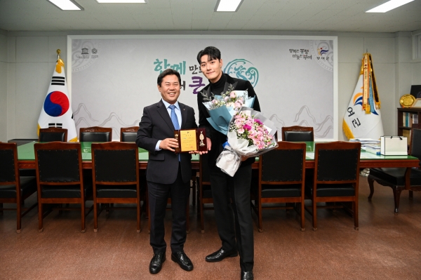 [충청뉴스큐] 박정현 부여군수는 지난 5일 군수 집무실에서 뮤지컬배우 임정모를 부여군 홍보대사로 위촉하고 위촉패를 전달했다.