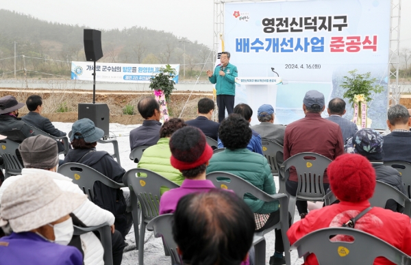군은 지난 16일 소원면 영전리에서 가세로 군수를 비롯해 국회의원 및 군의원, 관계기관장, 지역 주민 등 60여명이 참석한 가운데 ‘신덕지구 배수개선 사업 준공식’을 열고 사업의 성공적인 마무리를 알렸다.