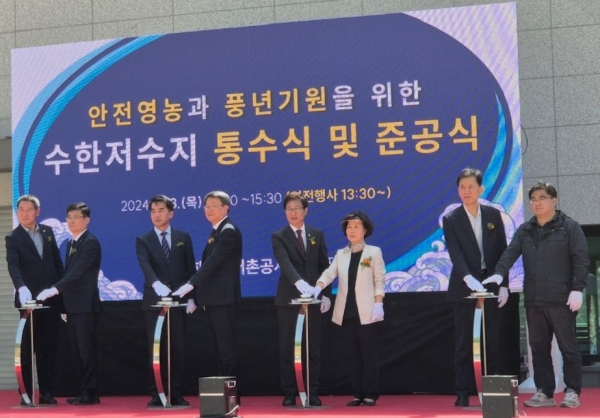 지난 2019년 6월 착공한 수한지구 다목적농촌용수개발사업은 국비 312억 8700만원, 군비 61억1800만원을 포함한 총사업비 374억 500만원을 투입해 조성한 수한저수지는 총저수량 111만톤의 저수량을 확보해 수한면 동정리, 장선리 등 이 일대 11개 마을 161㏊의 농경지에 안정적인 물 공급을 하게 됐다.