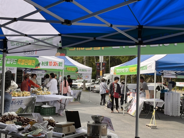 이번 행사에는 10여 생산 농가가 참여해 현장에서 수박, 방울토마토, 오이, 밤, 미곡류, 아스파라거스 등 제철 농산물과 지역 농산물로 생산한 식혜, 칡즙 등 굿뜨래 농특산품을 품목별 20% 할인된 가격에 판매했다.