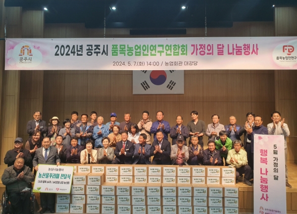 [충청뉴스큐] 공주시농업기술센터에서 육성·관리하는 품목농업인연구연합회는 지난 7일 각 연구회에서 마련한 농산물을 어려운 이웃들에게 증정하는 행복 나눔 행사를 실시했다.