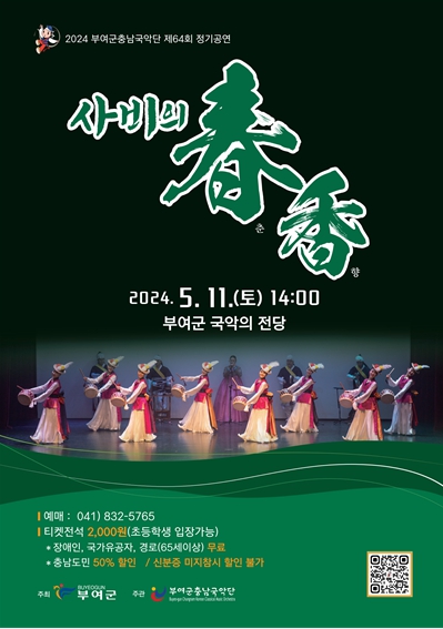이번 공연은 부여 국악의전당에서 5월 11일 오후 2시에 열리며 예약 문의는 부여군충남국악단으로 하면 된다.