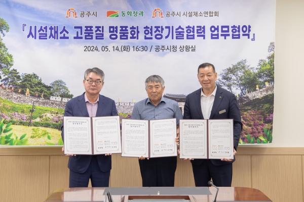 [충청뉴스큐] 공주시는 지난 14일 시청 상황실에서 ‘시설채소 고품질 명품화 현장기술협력 업무협약’을 체결했다고 밝혔다.