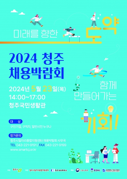 [충청뉴스큐] 청주시가 주최하고 청주시일자리종합지원센터가 주관하는 ‘2024 청주채용박람회’가 오는 23일 오후 2시 올림픽기념국민생활관에서 열린다.
